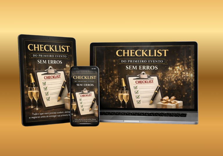 Tudo que é necessário para conferir, alinhar e registrar antes de entregar sua primeira festa, evitando falhas, esquecimentos e imprevistos comuns a quem está começando.